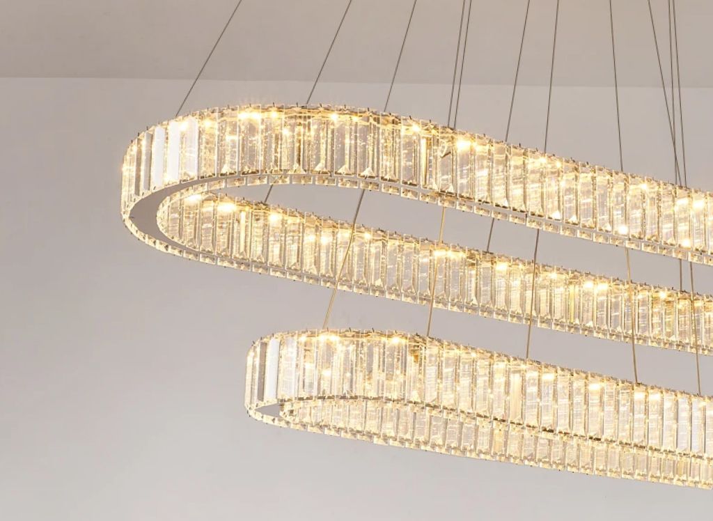 Contemporary LED Crystal Ceiling Pendant – Dimmable Oval Ring Chandelier for Home Decor