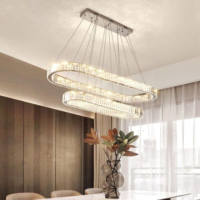 Bring a touch of sophistication to any room with our Contemporary LED Crystal Ceiling Pendant. Designed for modern living, this stylish fixture combines the allure of sparkling crystals with the sleekness of chrome, casting a warm and inviting glow in your dining room, kitchen, or bedroom. Its unique oval ring shape is not just an illumination source, it’s a statement piece that complements your home decor.