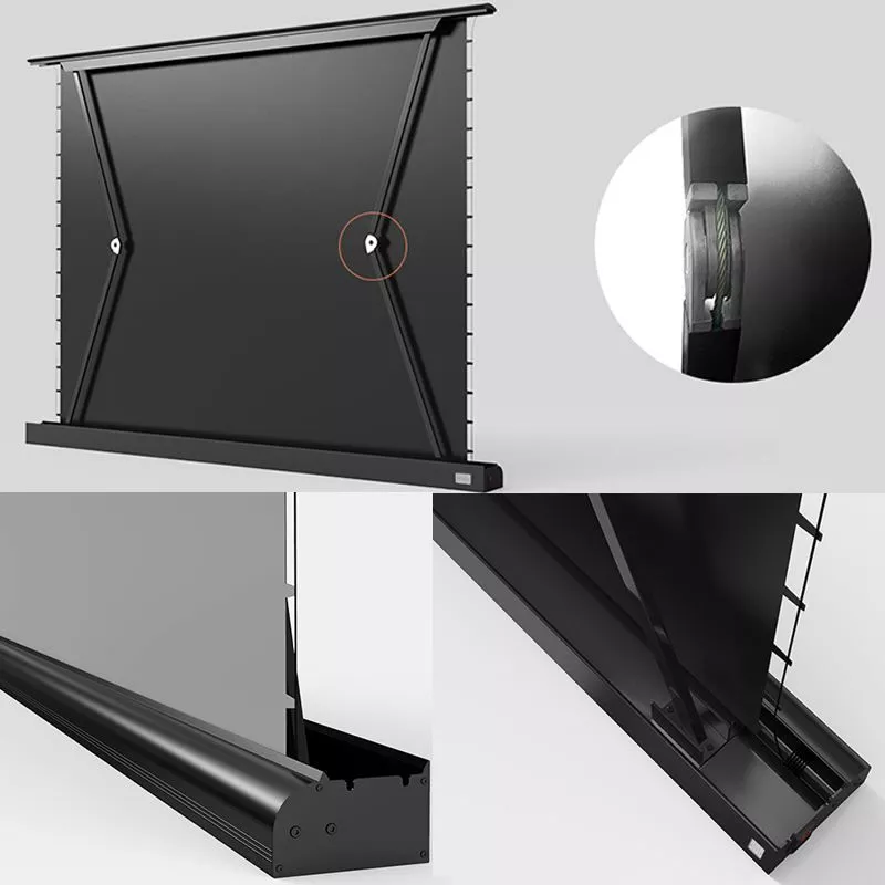 • Easy Installation: Say goodbye to the hassle of drilling. Our floor rising screen effortlessly extends upward, offering a simple setup that’s perfect for any room.