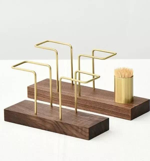 Elegant Wood and Brass Desktop Organizer with Multi-Functional Tissue and Toothpick Holder