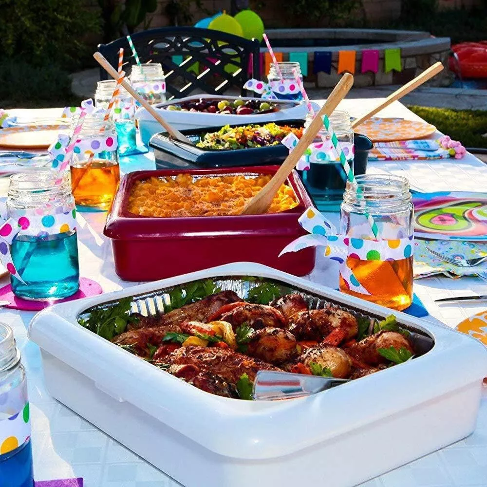Our product stands out with its blend of functionality, durability, and style. The no-fade, fancy pan matches any occasion, from casual picnics to elegant gatherings. Its large capacity and thermal insulation feature ensure that your food stays fresh, tasty, and at the right temperature for hours. The addition of a clear, stackable lid not only keeps food fresh but also makes carrying your meals hassle-free. Designed for convenience, it supports a mess-free kitchen and joyful sharing with friends and family.