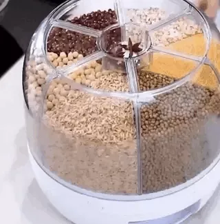 Step into a world of kitchen elegance with the Modern 6-Grid Rotating Grain Dispenser. Its compact design, crafted from high-quality materials, is a testament to durability and aesthetic finesse. The six individual storage cells effortlessly accommodate my diverse dry foods, maintaining freshness with its superior sealing capability. The unique rotating feature sets it apart, providing easy access and making my kitchen clutter-free. Choosing this dispenser was a conscious decision for a more organized and efficient kitchen space.